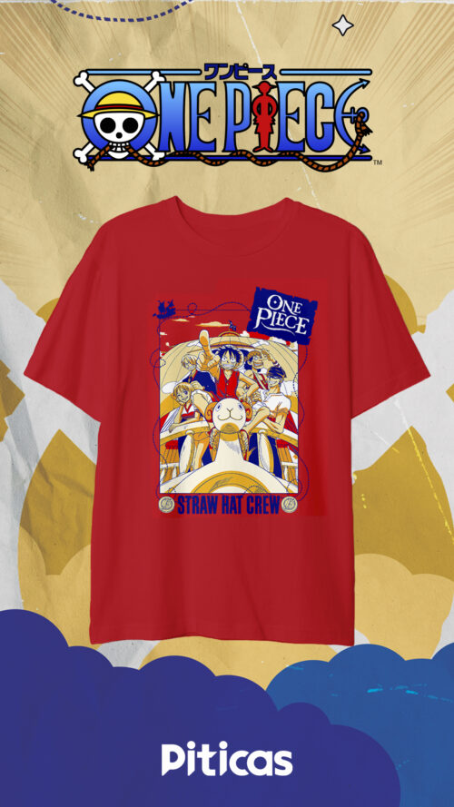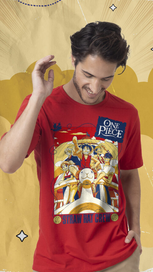 A camiseta é uma ótima maneira de expressar seu amor por One Piece e sua jornada épica com o bando de Luffy.